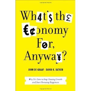 John de Graaf comes to Darvill’s Bookstore Sunday, May 20, 12 – 1:30 p.m. to talk about his latest book “What’s the Economy For, Anyway?” and a community conversation about the Happiness Initiative, which helps individuals, businesses, and local governments measure people’s joy.