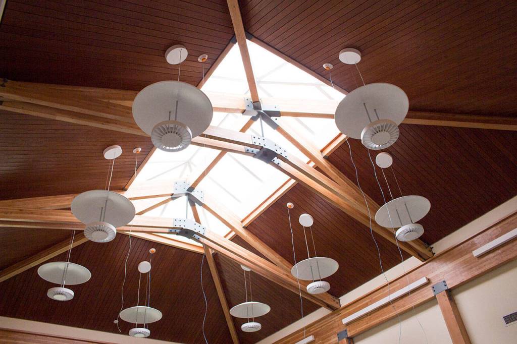 HKP Architects in Mt. Vernon drew the plans that included vaulted, acoustically backed ceilings, fir finish work, LED lighting and open, bright spaces.
