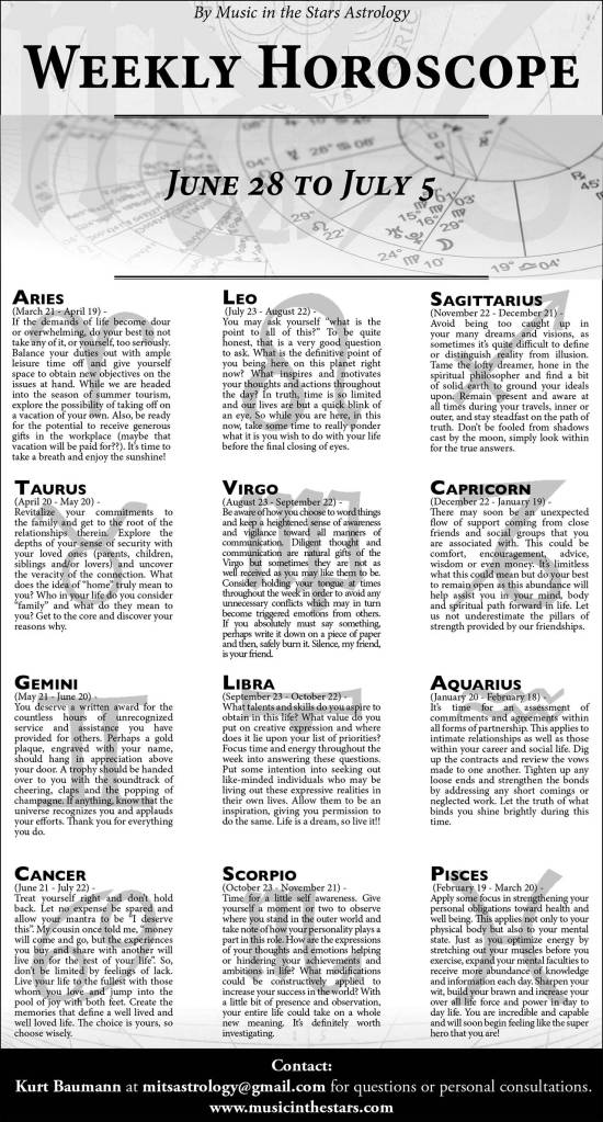 Check out the weekly horoscope from Music in the Stars Astrology on Orcas Island published every week in the Sounder.