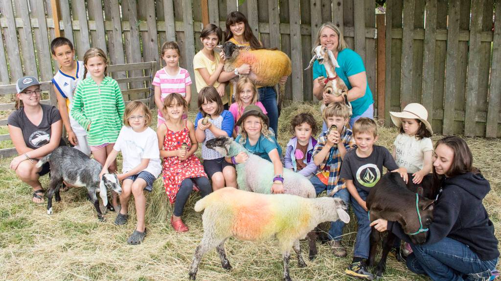The farm camp led by Amy Lum at Salmonberry School just finished up a week of activities. The 16 kids, aged five to eight years old, learned about eggs and feathers, held ducklings and chickens, interacted with goats and lambs, made feather prints/painted feathers, dyed wool, created paper plate ducks and cardboard barns, dyed the lambs, felted soap, crocheted/finger knitted, milked goats, made butter and short cake and fed Oliver the calf. The participants were mix of islanders and mainland residents.