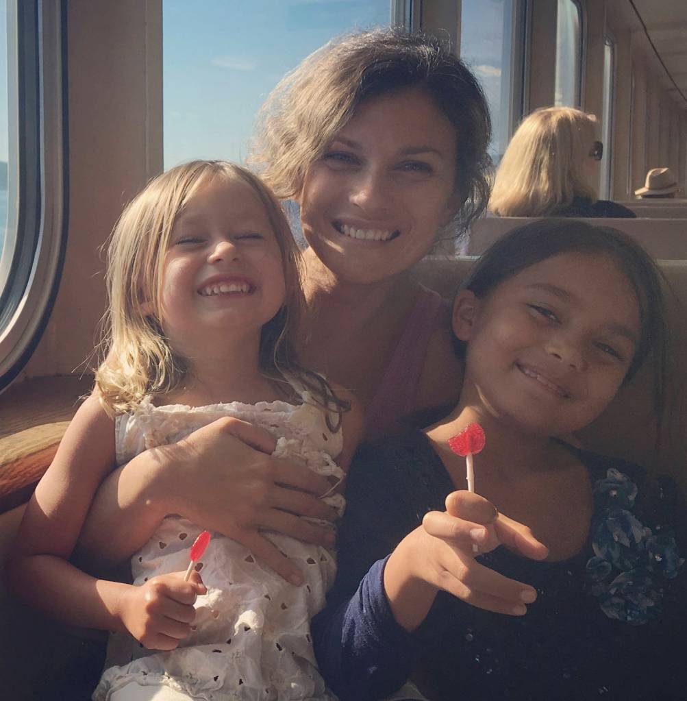 Alexandria Romero with her two girls arriving on Orcas.