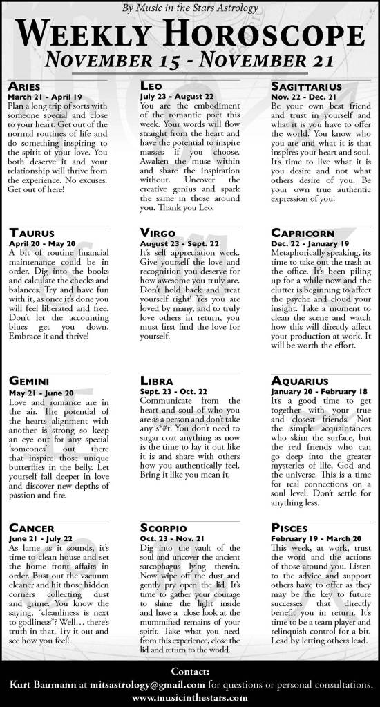 Check out the weekly horoscope from Music in the Stars Astrology on Orcas Island published every week in the Sounder.