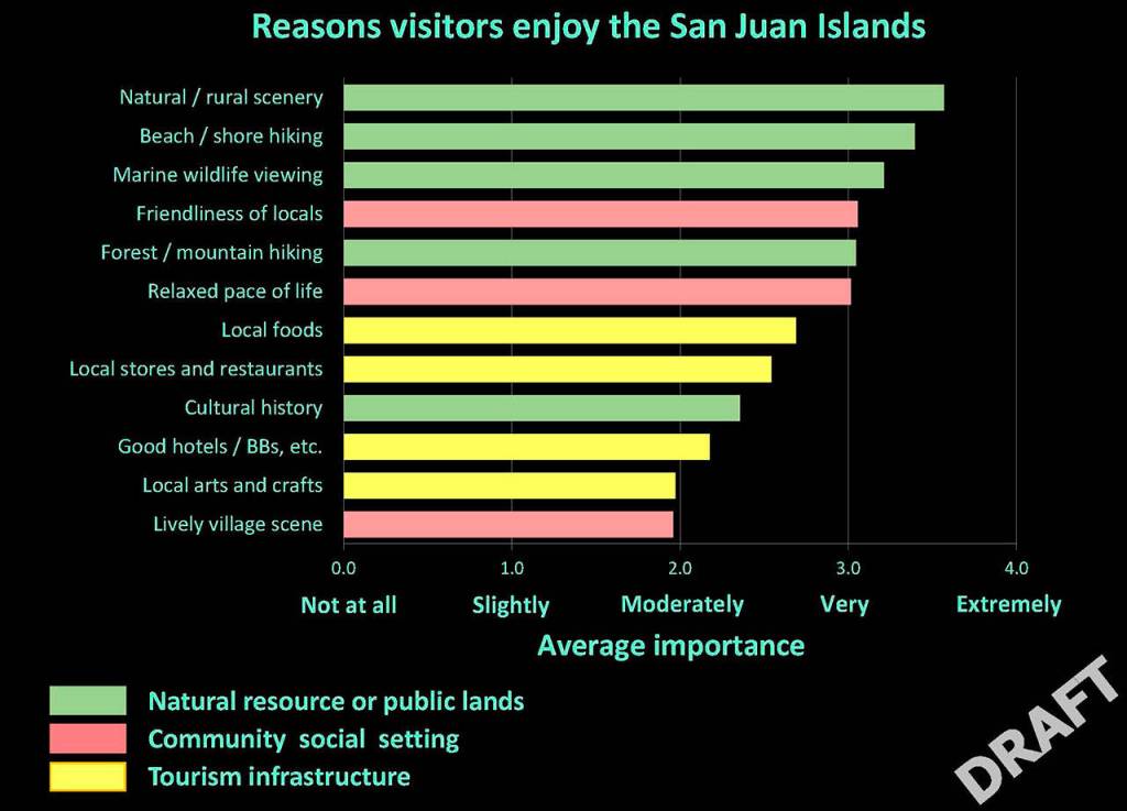 County and San Juan Historial National Parks Service staff administered surveys to Washington State Ferries passengers and visitors at local attractions last summer to answer the question, why are the islands a tourist attraction?