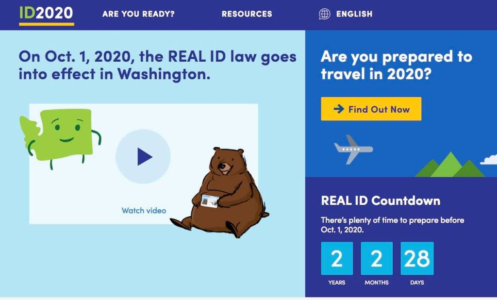 The main goal of the ID 2020 campaign is to help Washington residents decide which identity document best fits their lifestyle. Even though Real ID goes into effect on Oct. 1, 2020, it only affects people who want to travel by plane or access certain federal facilities. A standard driver license or ID card will work for other U.S. travel like driving in Washington, across state lines or riding a train.