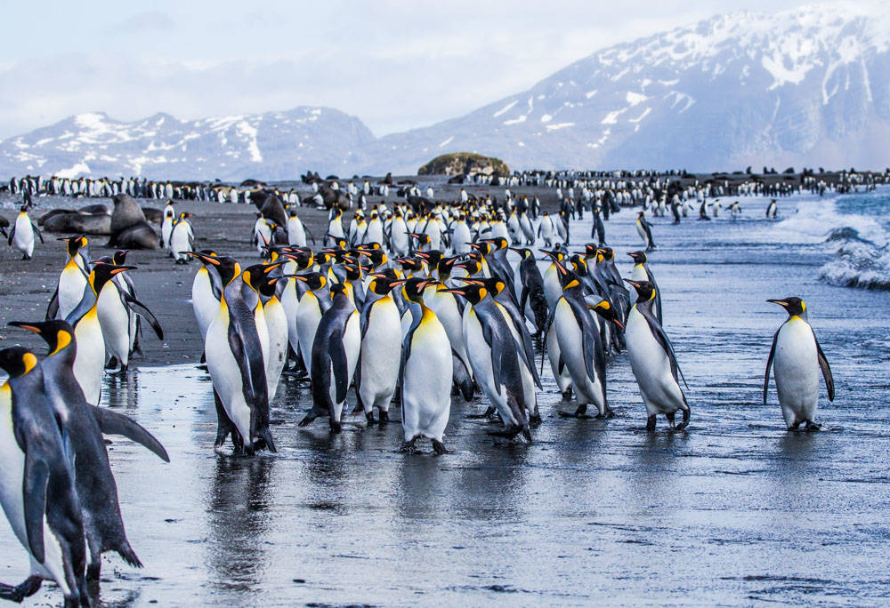 Cavanagh and the voyagers stopped in several of the Falkland Islands and made landings on penguin-packed beaches in the wildlife paradise of South Georgia Island. An eventful passage across the Scotia Sea opened up vistas of massive icebergs, snowcapped mountains rising from the ocean and colonies of Adélie and chinstrap penguins. Recent changes in climate and krill harvesting raise the question of how many more generations will be able to enjoy this vast polar desert in its current abundance. Cavanagh is a Pacific Northwest photographer who specializes in photographing birds in flight.