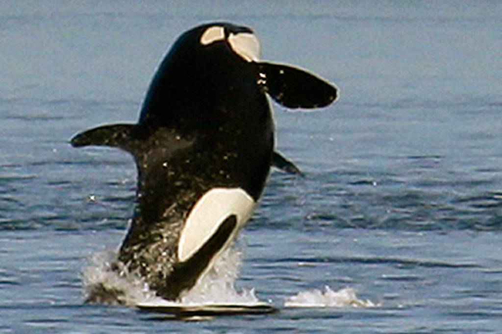Marino said scientists know this because she and her colleagues spent a lot of time at the Smithsonian Institute taking whale fossils and mapping their cranial cavities using a computerized tomography machine. With that information, she added, scientists could establish the shape and size of the animal’s brain and determine that 35 million years ago a shift occurred. Orca ancestors had sharp teeth and small brains but developed larger brains and smaller teeth, setting them on the path toward modern dolphins and whales.