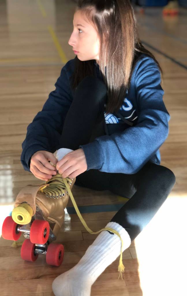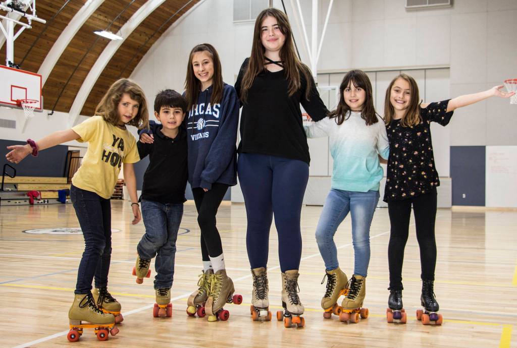 The entire community — not just kids and parents — is invited to glide around the gym from 4-7 p.m. each Saturday (with a few exceptions) through the end of the school year. Parents and friends often sit in the bleachers to cheer the skaters on, particularly during the lighthearted “racing” portion of the evening. Music has been supplied by guest DJs Sommer and Hazel McKenzie and Charlie Eon.