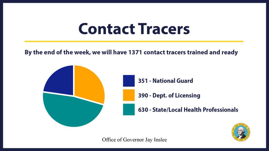 During the governor’s press conference, he announced that the statewide contact tracing team will be trained and in place by the end of the week of May 15. The contact tracers will include members of the Washington State National Guard, though they are an interim part of the initiative. The state Department of Health plans to continue training more workers and volunteers to replace them over time.