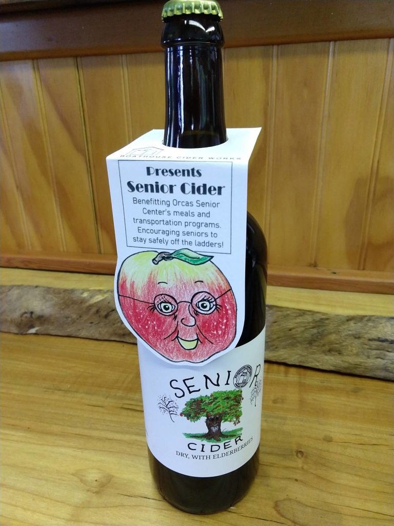 Local business owner Libby Garcia at Boathouse Ciderworks has worked her magic and created a cider exclusively for Orcas Senior Center called “Senior Cider.”