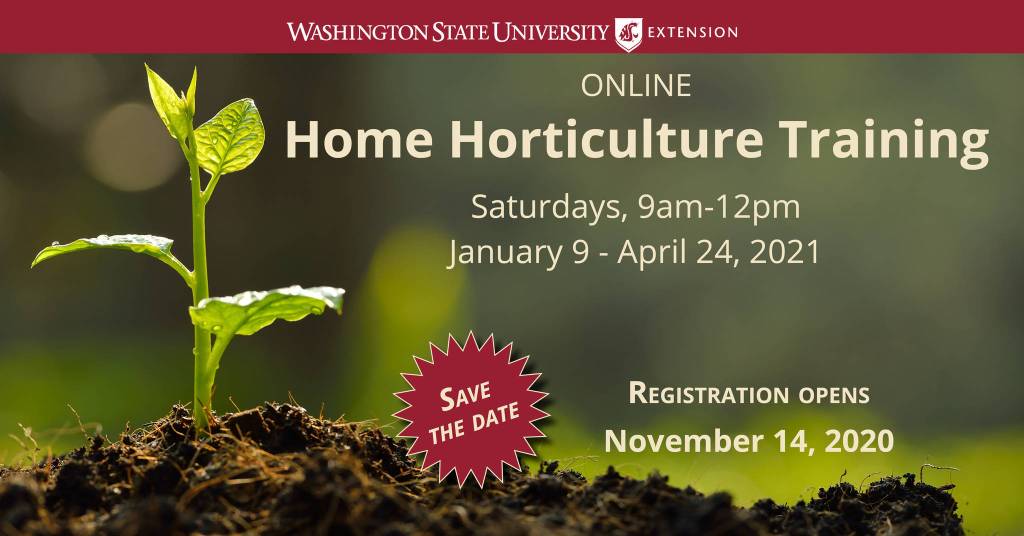 Training focuses on a wide range of horticulture topics taught online by WSU faculty, staff, Master Gardeners, and other regional experts on Saturday mornings from 9 a.m. to noon starting Jan. 9 and continuing weekly through Apr. 24.