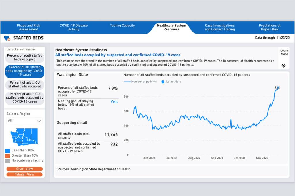 “Accurate and relevant data is critical to allow all of us to work together to ensure no individual hospital or region is overwhelmed with COVID-19 cases,” said Darcy Jaffe, senior vice president of safety and quality for the Washington State Hospital Association.