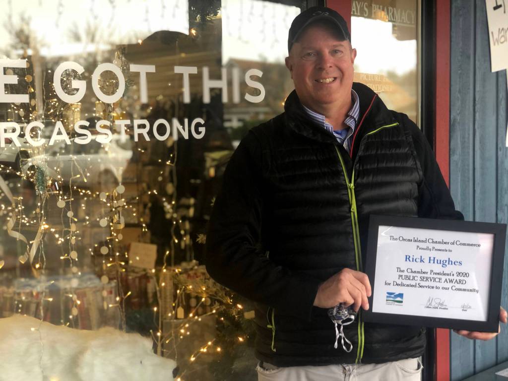 The Orcas Island Chamber of Commerce and its Board President Colleen Smith have announced they are honoring Rick Hughes with the “President’s 2020 Public Service Award for Dedicated Service to the Community.”