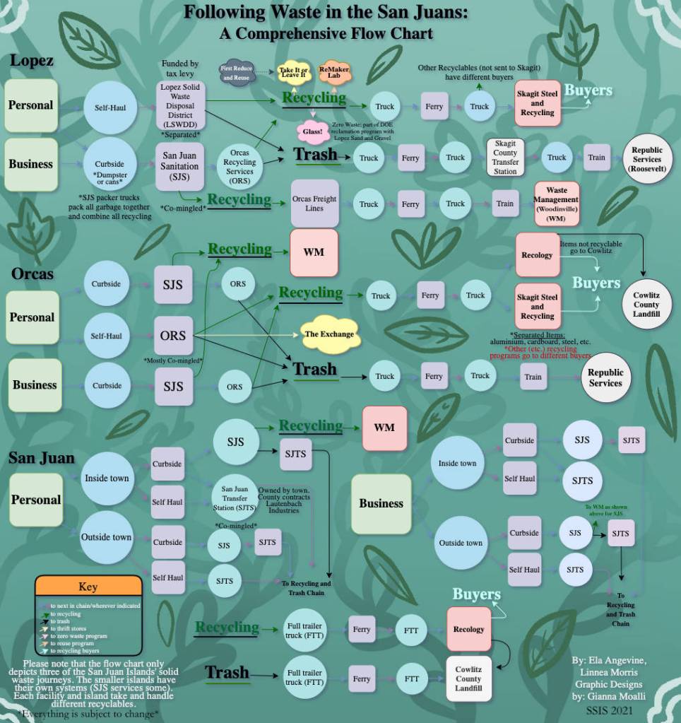 Spring Street Garbage Patrol — the environmental club founded by myself and Linnea Morris — researched the journey of our recycling on the three largest of the San Juan Islands. The compilation of information comes from the websites each island’s facility operates, interviews with employees and managers of all the transfer stations, and speaking with locals who work in tandem with the waste business. If you live on Lopez, Orcas, or San Juan this important information pertains to YOU!