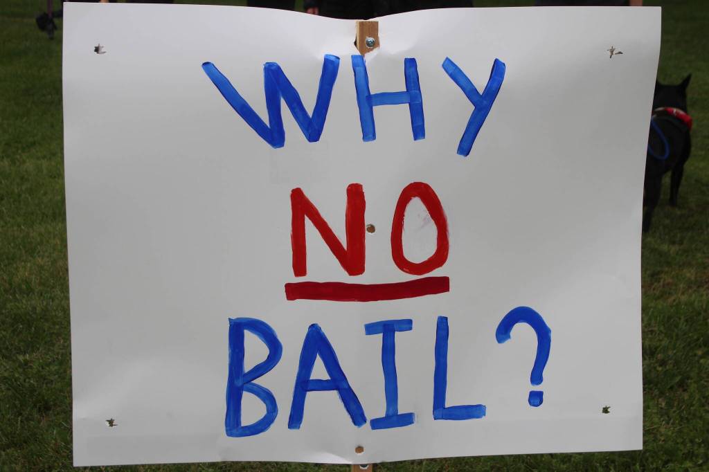 The protest was spurred on by the fact that bail was not imposed on Jason Ryan Aldous, 37, of Friday Harbor, after he had been accused of misconduct with a minor.