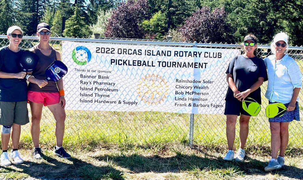 The Orcas Island Rotary Club’s Pickleball Tournament hosted more than 30 teams in a full weekend of friendly competition August 6 – 7 at Buck Park. While there were some clear winners in the pickleball brackets, the big winners were the Family Resource Center, who will receive half of the donations – and islanders seeking an education in the trades with the Rotary scholarship fund receiving the other half of the $5,600 raised.