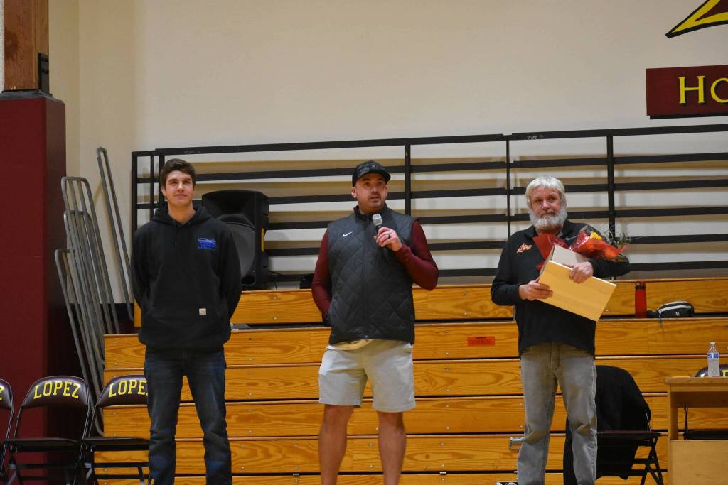 On Jan. 6, The Pack, Lopez Island’s non-profit booster club, held a ceremony following the boys’ basketball game vs. Cedar Park — and what a game it was. Lopez ended up losing a close one at the end but Buffum was the star of the night.
