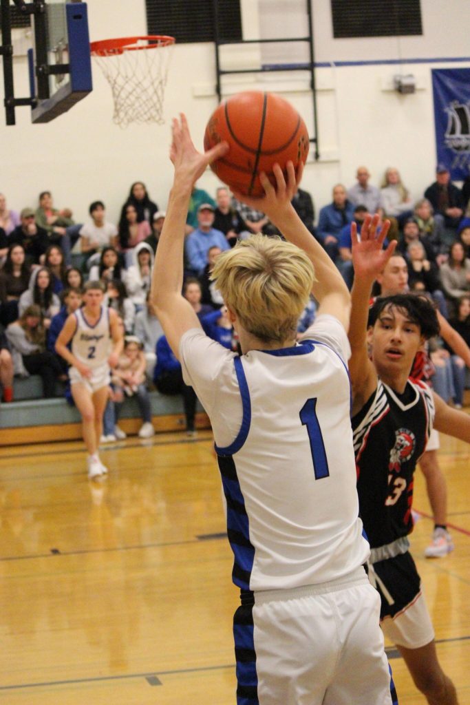 After receiving the sixth seed in the Tri-District seeding the Vikings hosted Tulalip Heritage. The Heritage Hawks had finished fifth in the district tournament after beating Lopez to reach this point. The Vikings were favorites for this game but that message wasn’t communicated to the Hawks who came out guns blazing and had the Vikings on their heels. The game would be going in Tulalip’s favor early and that got their crowd engaged. If it wasn’t for the logo at mid-court you wouldn’t have known where the game was being played. Despite all the energy from both the Hawks and their crowd, the Vikings held onto a slight lead 23-21 after just a quarter. Diego Lago would get into early foul trouble, and without their leading scorer things were looking scary for the home team. The rest of the team was able to pick up what was needed and the Vikings got to the half up 43-39. Halftime flipped a switch, whether it was the energy running out for the Hawks or picking up for the Vikings it didn’t matter as the Vikings found their groove and went on a 25-8 run to close the third quarter 68-47.