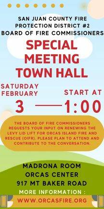 Orcas Island Fire and Rescue will be having a town hall meeting on Saturday, Feb. 3. All are invited.