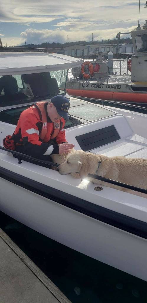 Once the Samish arrived in Anacortes, the statement continued, the four individuals on the ferry were transported by Anacortes Fire to receive further assistance. Coast Guard crew “embarked the two remaining personnel and two dogs” to the 45 RBM, while the crew’s engineer, MK2 Lavarreda, drove the damaged boat and followed the 45 RBM to Cap Sante Marina where Anacortes Fire reunited the first four individuals with those onboard the 45.