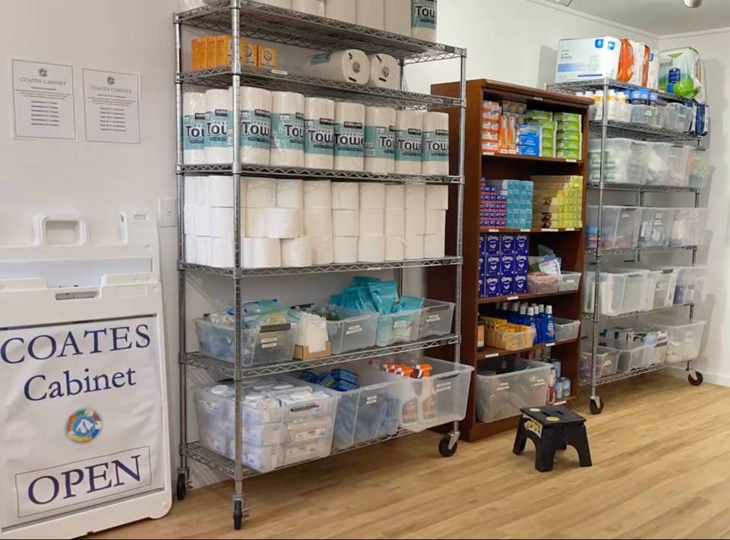 How you can help: Every contribution, no matter how small, makes a difference! Fill the Coates Cabinet collection bin with new, unopened hygiene items such as toilet paper, paper towels, laundry soap, dish soap, hand soap, ziplock bags, Kleenex, body wash and shampoo.
