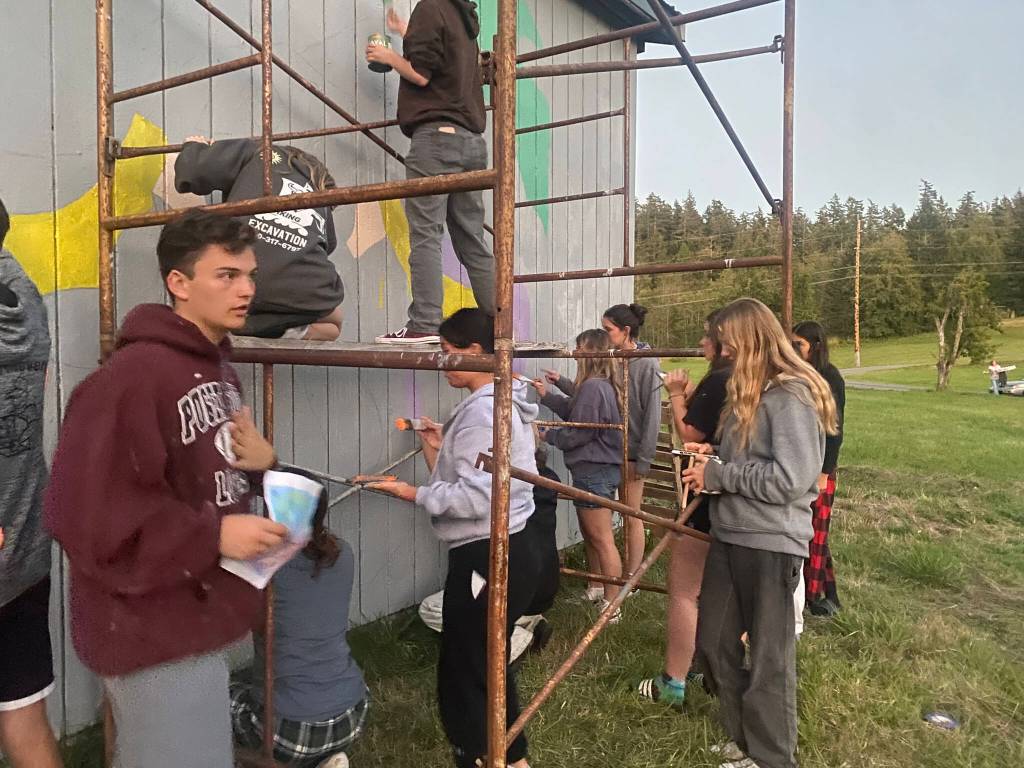 Orcas Island High School seniors are already beginning to work on college applications, essays, and, of course, the long-standing tradition of painting the barn. This year, Lucy Troxel did the design mock-up. The seniors have been working hard to bring design to life.