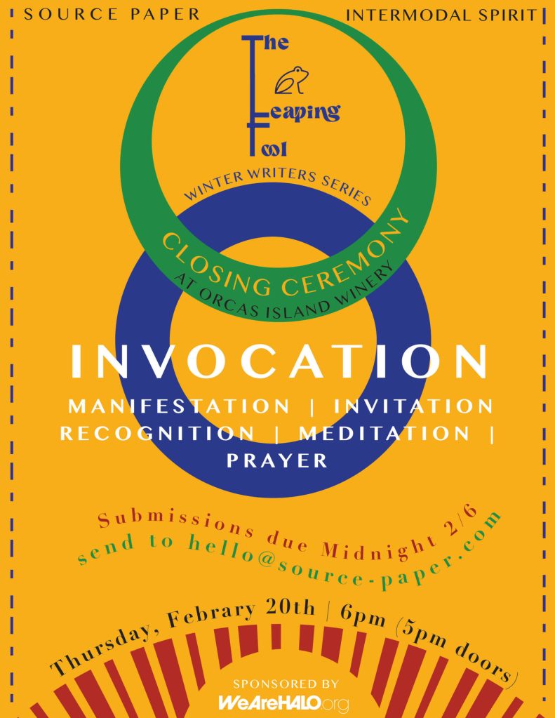For our final theme and reading of The Leaping Fool Winter Writers Series, Invocation, we ask participants to explore through the use of language and sound, ways of manifesting. This is an age-old method, yet each age has its own signature; let yours be known. Here we will look to the collective creativity to weave together the dynamic future we envision thriving in. Where are we now? And what can you imagine is possible?
