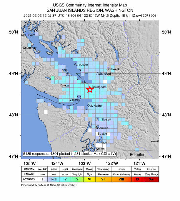 A 4.5 magnitude earthquake is on the upper end of what’s considered a mild earthquake on the richter scale, according to USGS; enough to be felt but unlikely to cause damage. However, according to the San Juan County Department of Emergancy Management, this was a large quake for the islands- one of the biggest seen in decades. A great reminder that we do live in quake country and that preparedness is key- visit www.islandsready.org for info on how to get started.