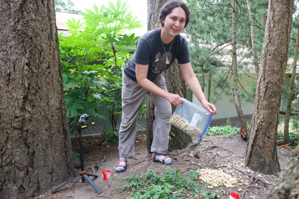 Frausto’s research found an unexpected ally in Jean Henigson, who responded to her community survey about squirrel sightings. Henigson immediately recognized both species in her yard and invited Frausto to set up cameras on her property. “She loves the squirrels here,” Frausto notes. Henigson had spotted the difference between the species long before the research began, correcting neighbors who mistook the smaller Douglas squirrels for babies or chipmunks. In a delightful coincidence, Henigson had also attended UCLA in the 1960s, giving the two women an instant connection.