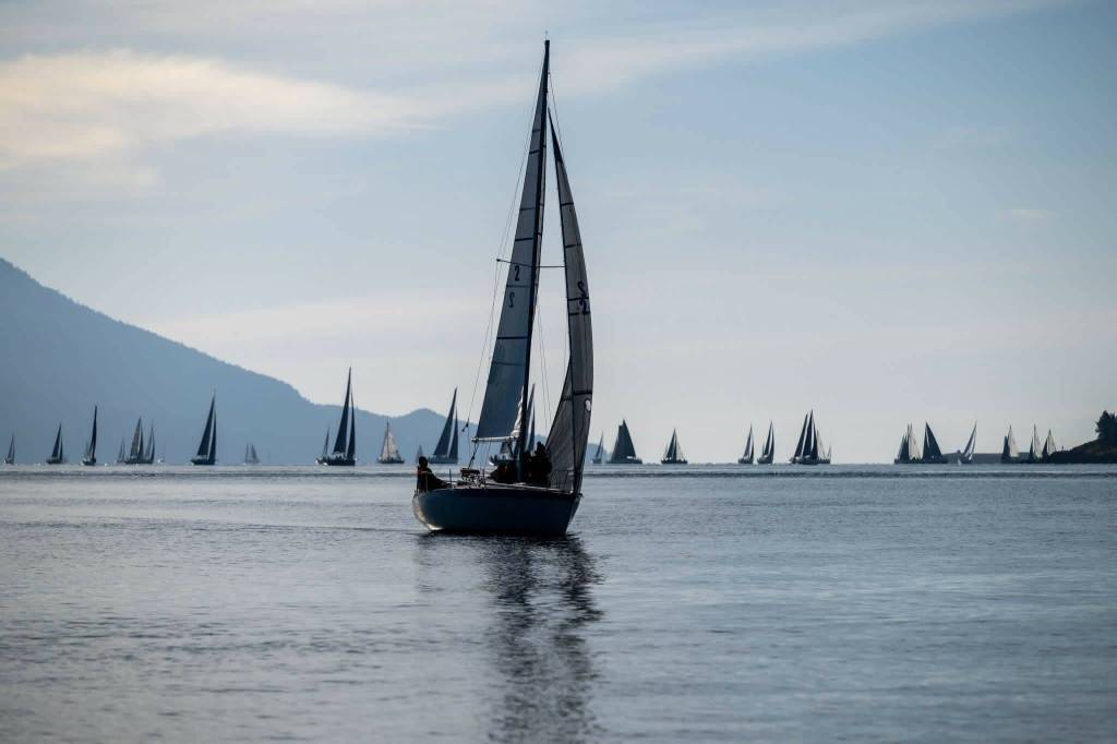 The racers went clockwise this year, from Lydia Shoal around Davison Rock, at the southern tip of Lopez, headed west through the Strait of Juan de Fuca, past the Salmon Bank Buoy, then up the west side of San Juan Island. Sailors overnighted at Roche Harbor. On Sunday, the wind was slightly better as they headed back out into the Salish Sea. This time, they sailed toward Turn Point on Stuart Island. From there, it headed northeast to Boundary Bay, then turned southeasterly toward Peapod Rocks and back to the finish line at Lydia Shoal.