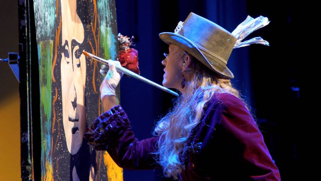 If you’ve never seen a 6-by-9-foot portrait painted live while a full band performs, a flutist switches to laser harp and audience members find themselves pulled onstage — well, you haven’t seen “Artrageous.”