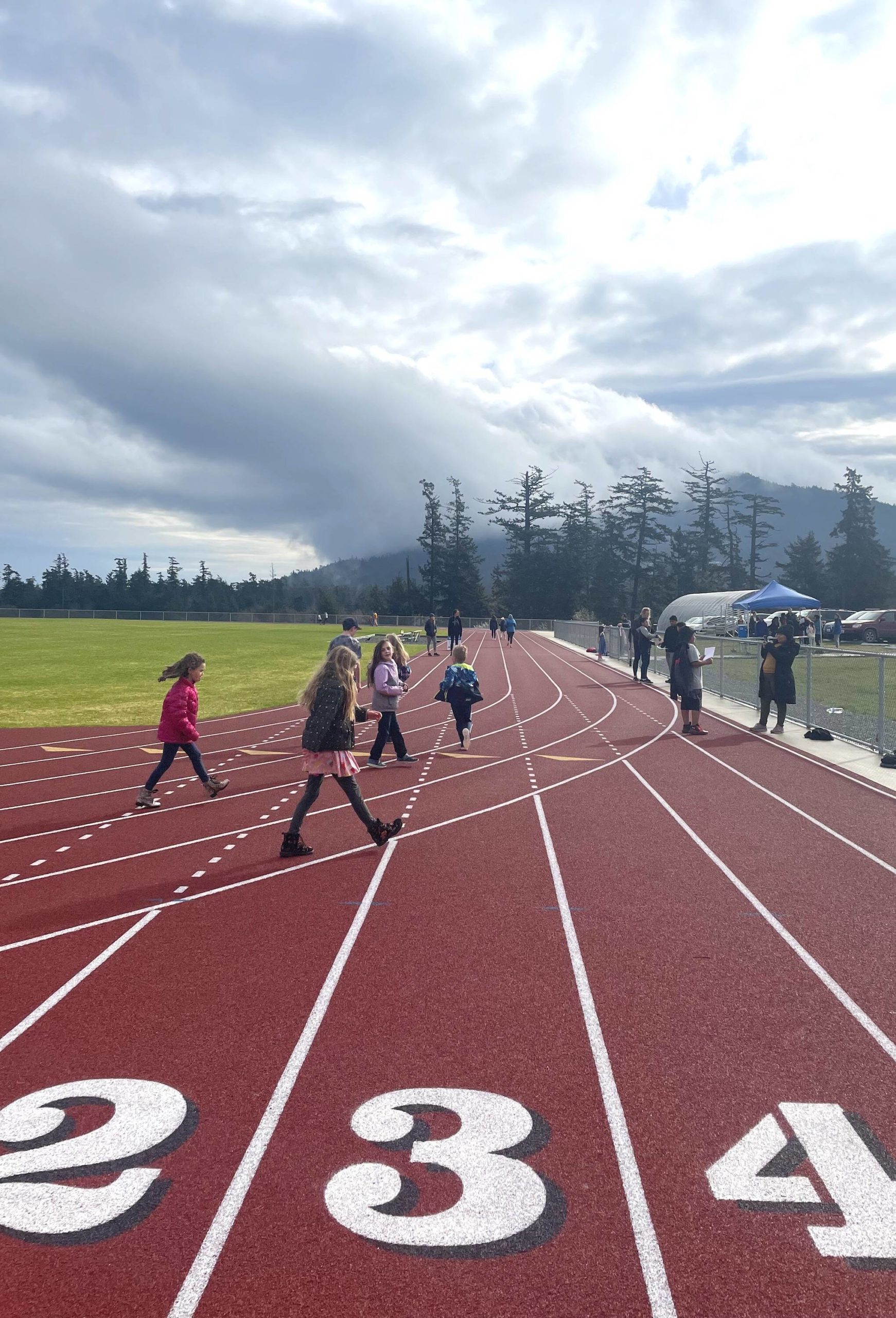 That seemed to be the forecast in the sky on Saturday, March 26 during the first annual Orcas Island Heart Pledge Jog-A-Thon. At 9 a.m. on the new Orcas Island Public School track where 78 students and their families were checking in and setting off on their individual laps with the collective goal to raise funds for any local child with a special heart, the rain was starting to come down hard.