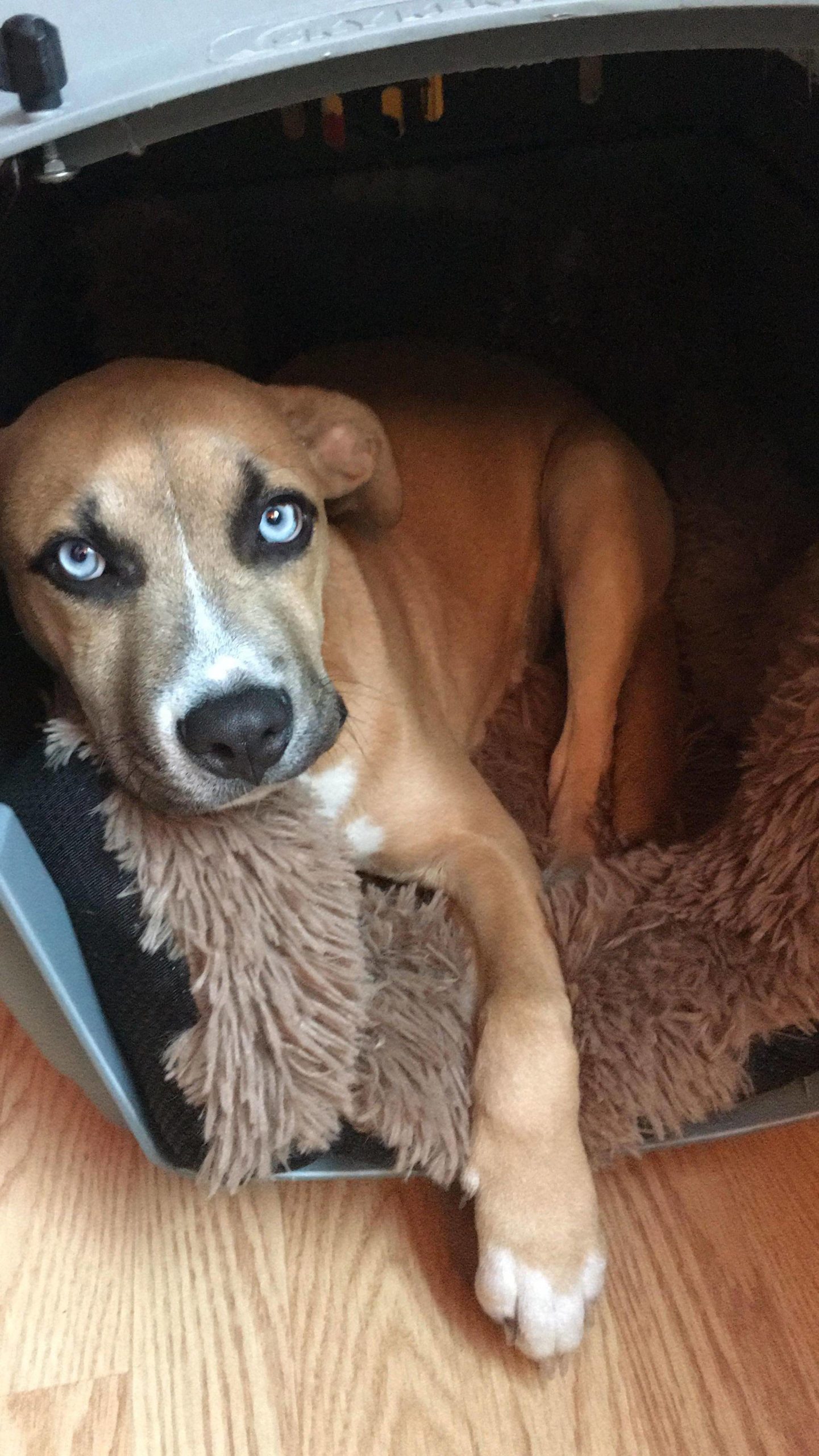 Stephanie Cariker and her family joyfully welcomed Hocus, now six months old, in January. Cariker says he is likely a boxer, pitbull and ridgeback mix.