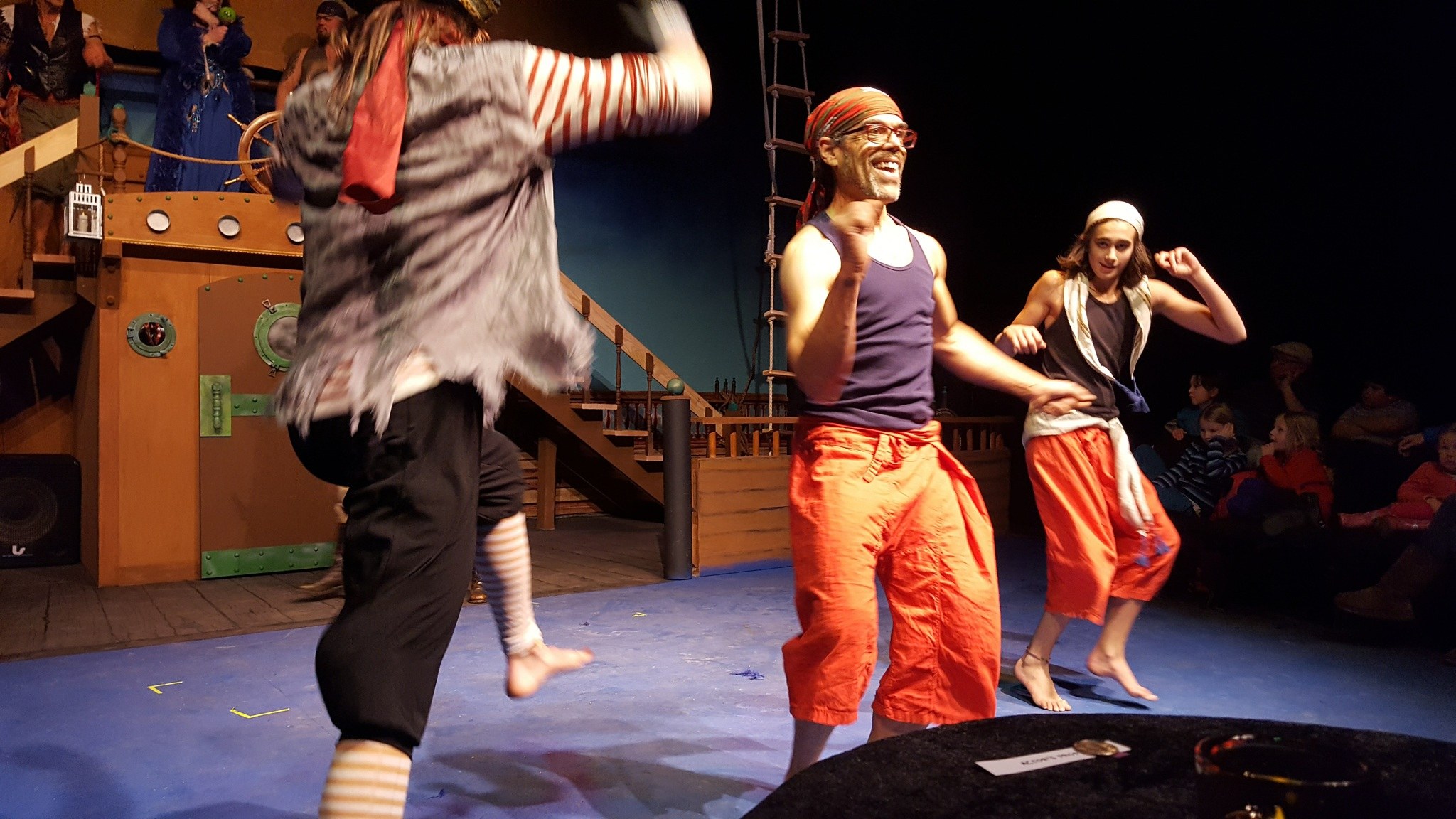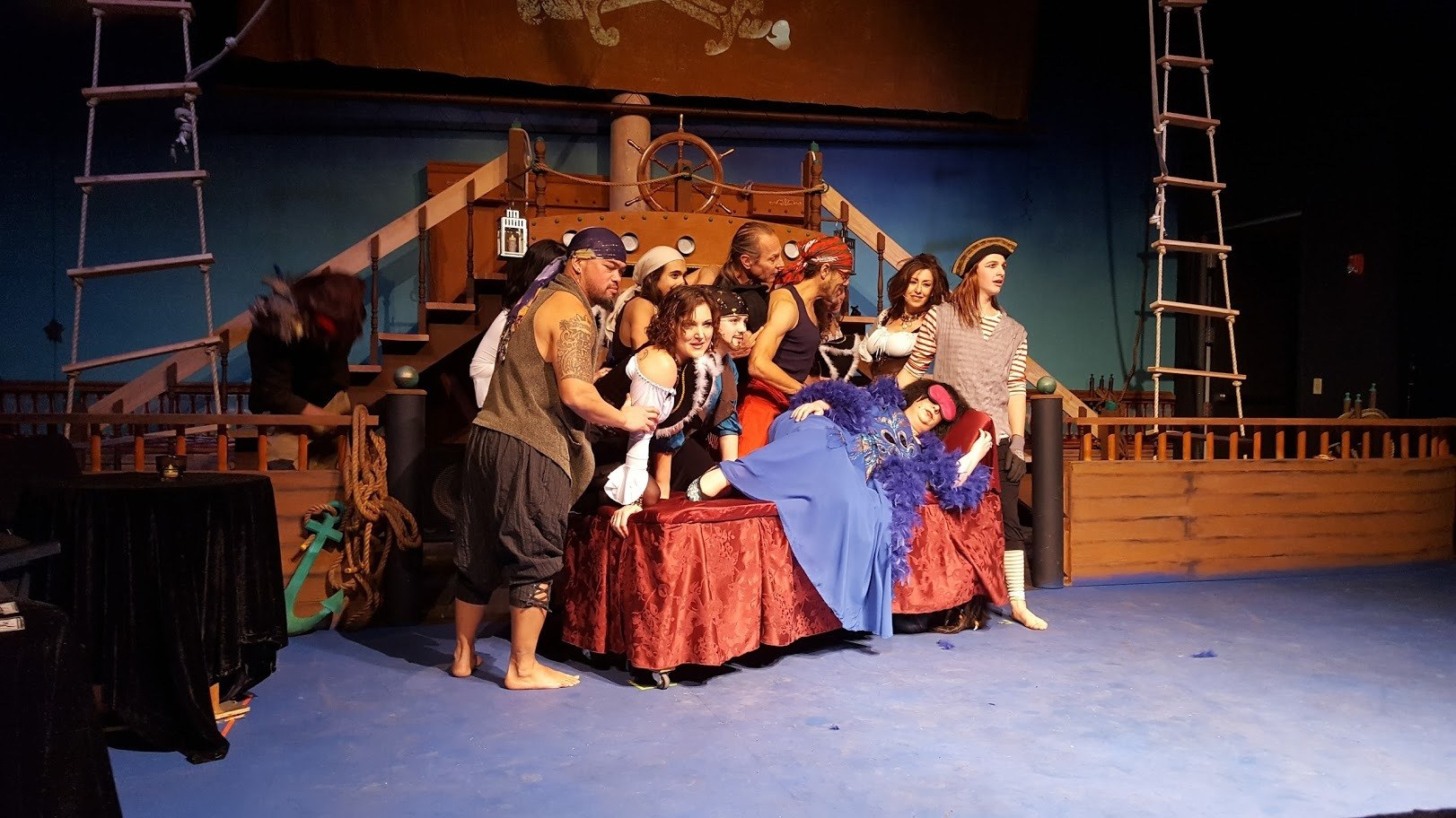 The set – built and designed by Chris Brems – replicates a seafaring vessel perfectly, with many audience members in awe of its construction. Director and creator Deborah Sparks’ musical selection has a variety of songs spanning many genres, with Kevin Colomby manning the sound booth during the production.