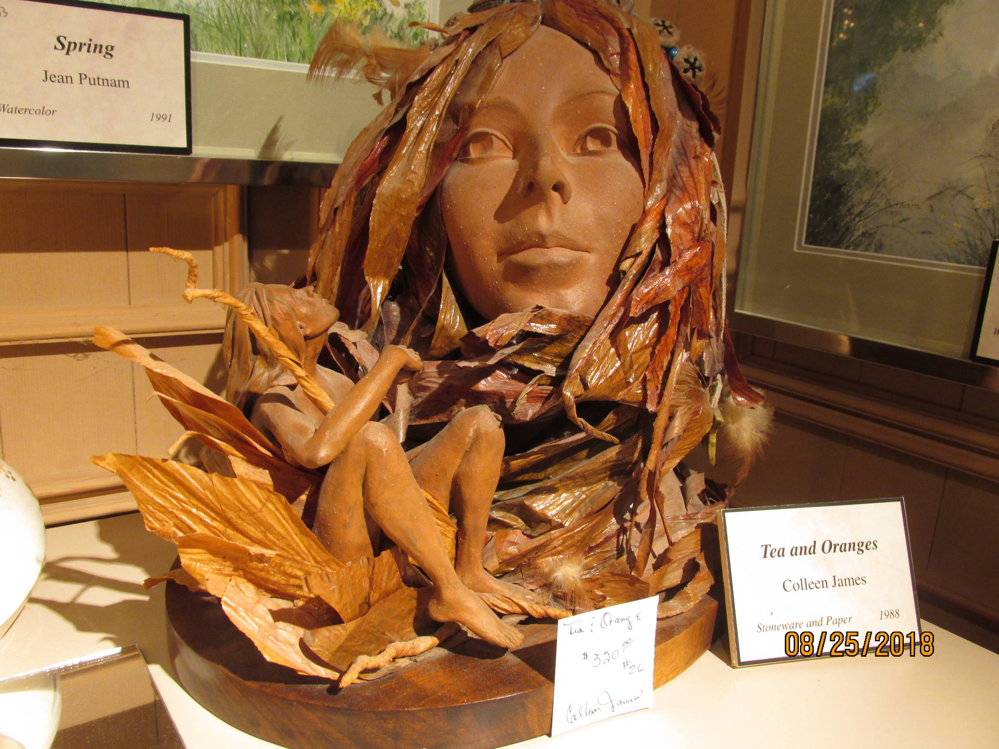 For two days, visitors sipped wine and munched on finger sandwiches as they wandered through the split-level home filled with collections of sculpture, glass, oils, watercolors, weavings and photographs. Several enthused about the timeless collection of grandfather clocks, including one made from what looked like recycled barn wood. Handcrafted felt, foot-high historical dolls filled a planter, and an unattached James Hardman addition that opens onto a large deck where an enormous piece of burnished metal rises up 10-12 feet and frames a Greco-Roman arch and a garden below.
