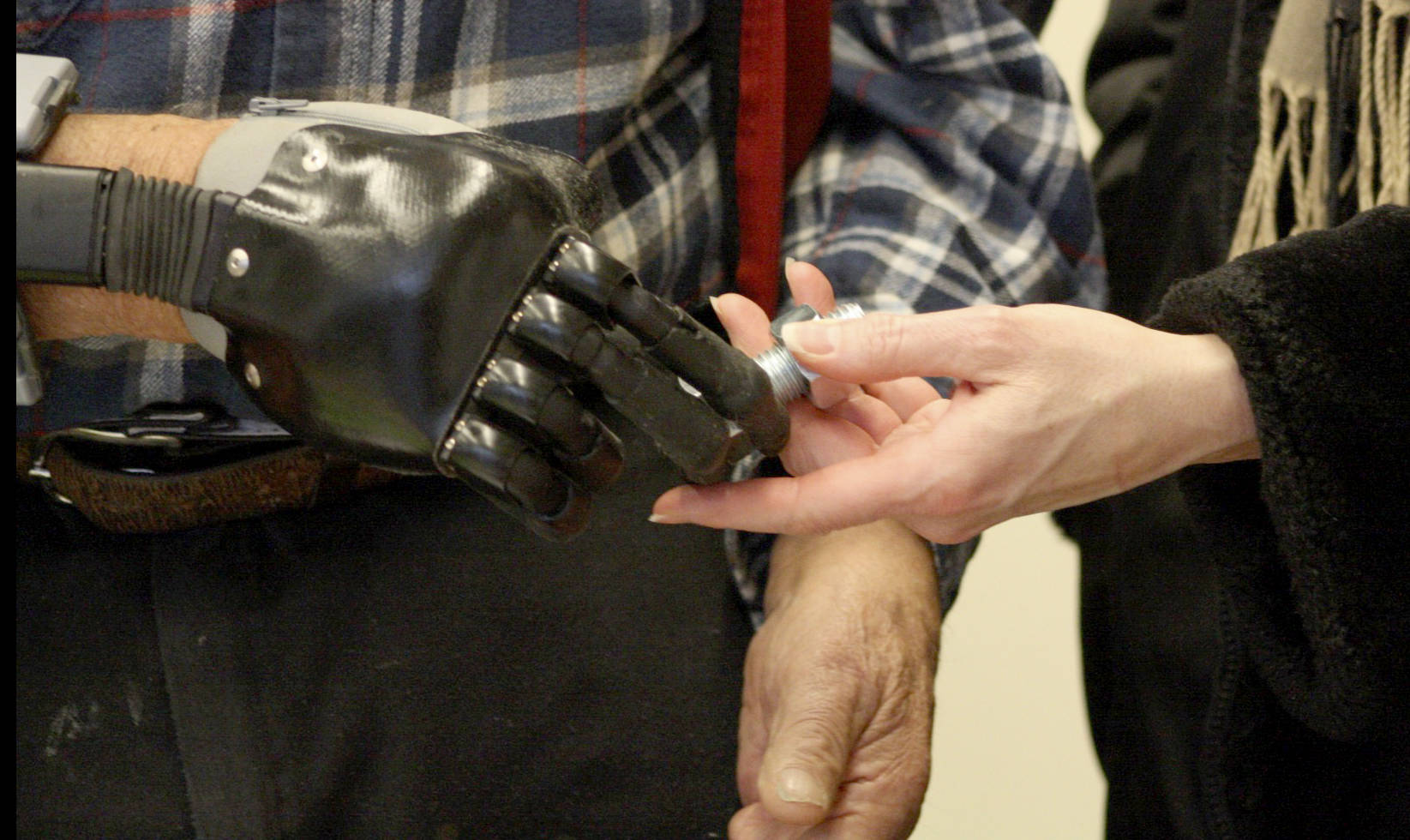 “Do you tell your fingers to move?” asked Mann, as he smiled during a presentation of his prosthetic at Peace Island Medical Center on Thursday, Dec. 28. “Mentally, when you reach out to pick up anything, it comes through your brain.”