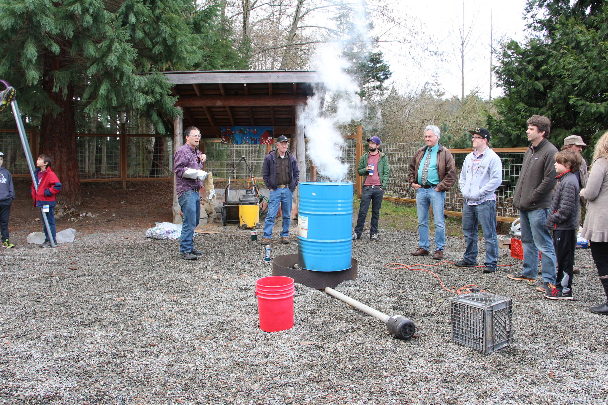 While the projects were being judged, attendees enjoyed fruit, vegetables and barbecued hot dogs, watched as aluminum cans were melted and poured into molds and saw a large metal barrel implode.