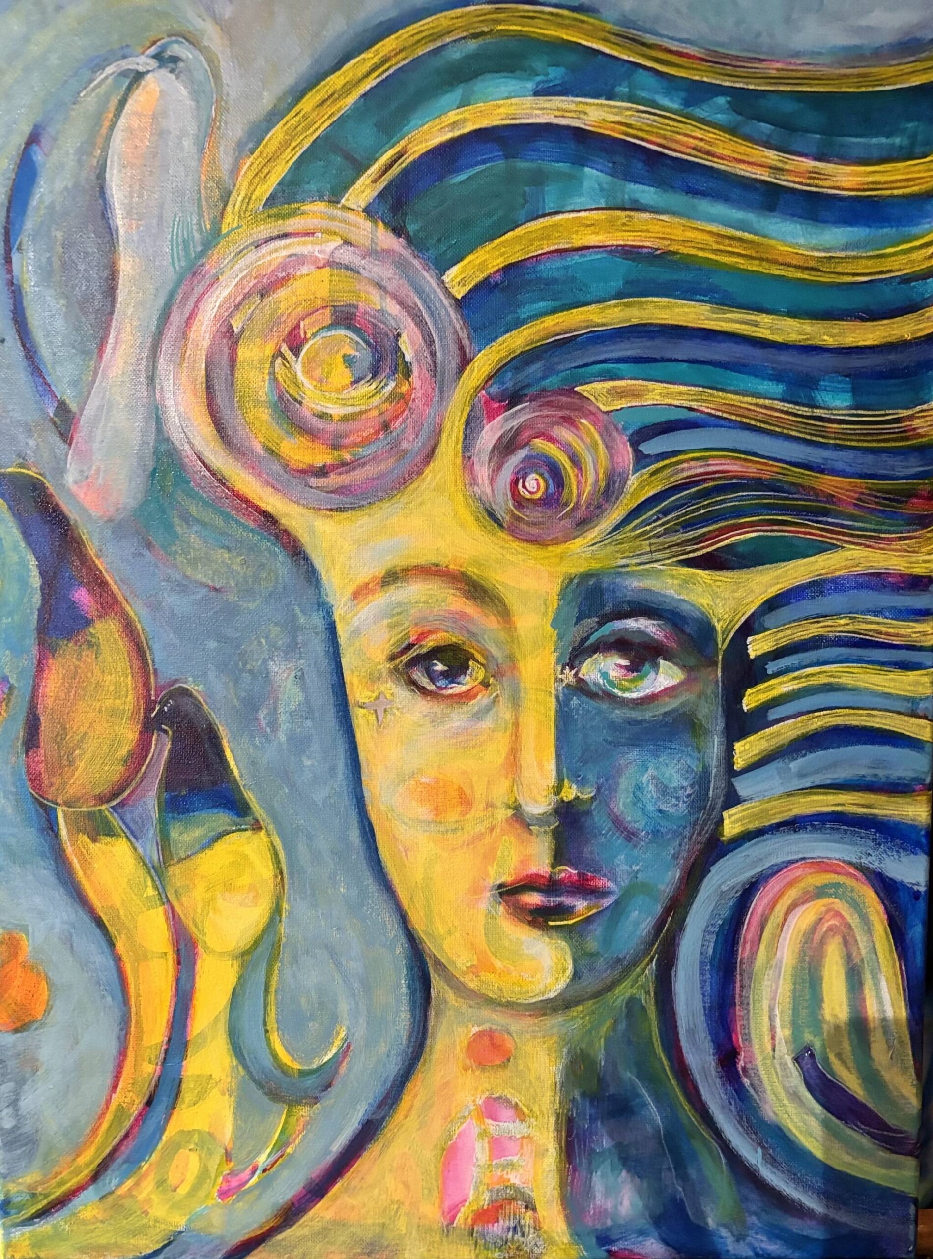Babcock received an FA in painting from the San Francisco Art Institute, is a certified Intentional Creativity teacher and is this year’s Washington State Inter-Island Ferry Writer in Residence. This show of her latest work demonstrates some of the ways she weaves words into her visual work as well, layering intentions, prayers, and personal iconography beneath and throughout the imagery, sometimes visible, sometimes not.