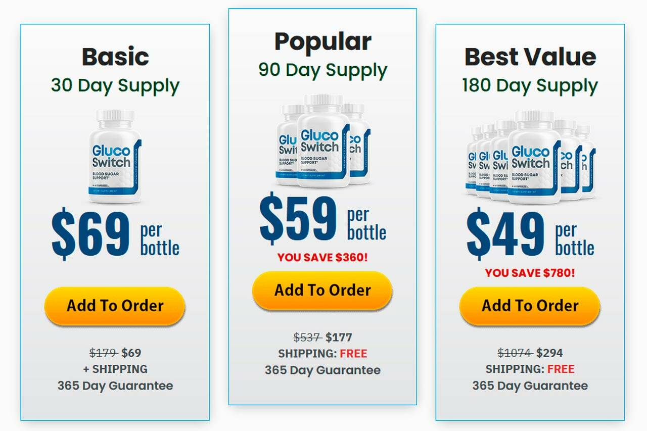 One bottle of the GlucoSwitch Blood Sugar Support capsules is priced at $179 but is now available on the official website for only $59. This is the basic package that only those users buy who are too unsure of their ability to take the supplement regularly.