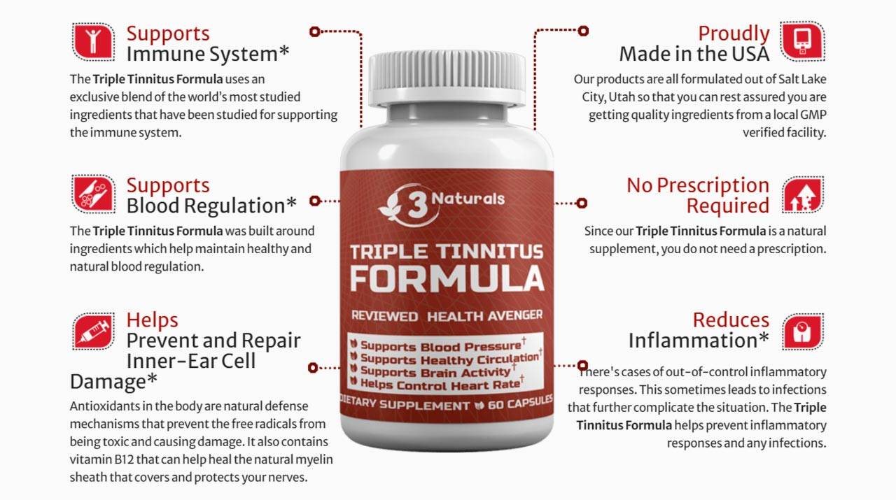 The triple tinnitus formula is built using the most effective ingredients to help eradicate annoying the feeling brought about by sharp noises. It also improves blood flow, blood circulation and maintains a healthy blood level. It helps cure Tinnitus and repair the ear and hair cell damage naturally.