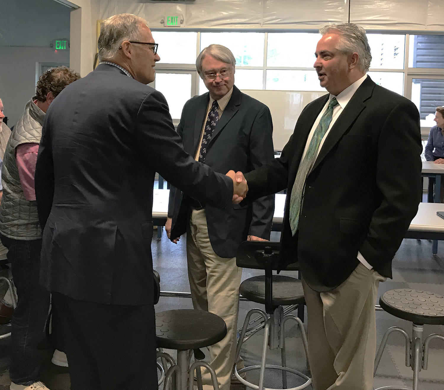 Contributed photo/OPALCO                                OPALCO General Manager Foster Hildreth and Board President Vince Dauciunas meet with Governor Inslee.