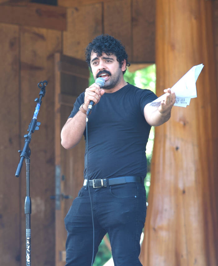 Maria Poblet gave a call to action to the people on the Village Green: “We encourage people to self-organize where you have mutual alignment on what you want to do. We need so much leadership in this political moment, in every corner. Our goals for today are to keep strengthening our community and the connections between us so we can show up for each other and for the most marginalized among us.”