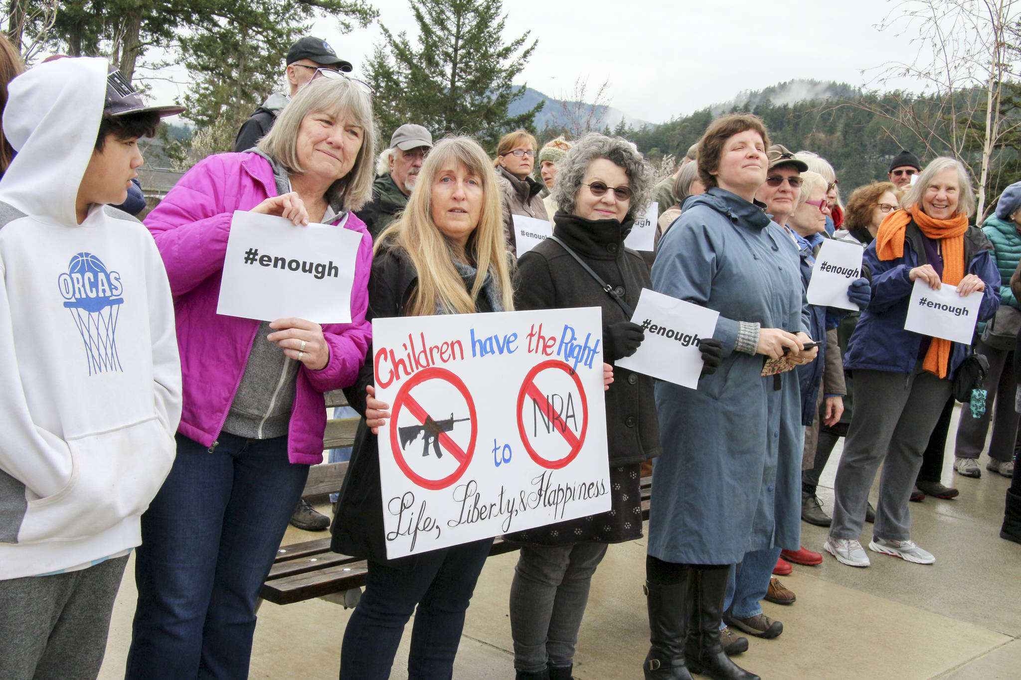 Orcas Island high school and middle school students participated in the nationwide walkout event honoring the 17 victims of the Stoneman Douglas High School shooting that happened exactly one month ago in Parkland, Florida. Many community members were in attendance as well, supporting the youth in their activism.