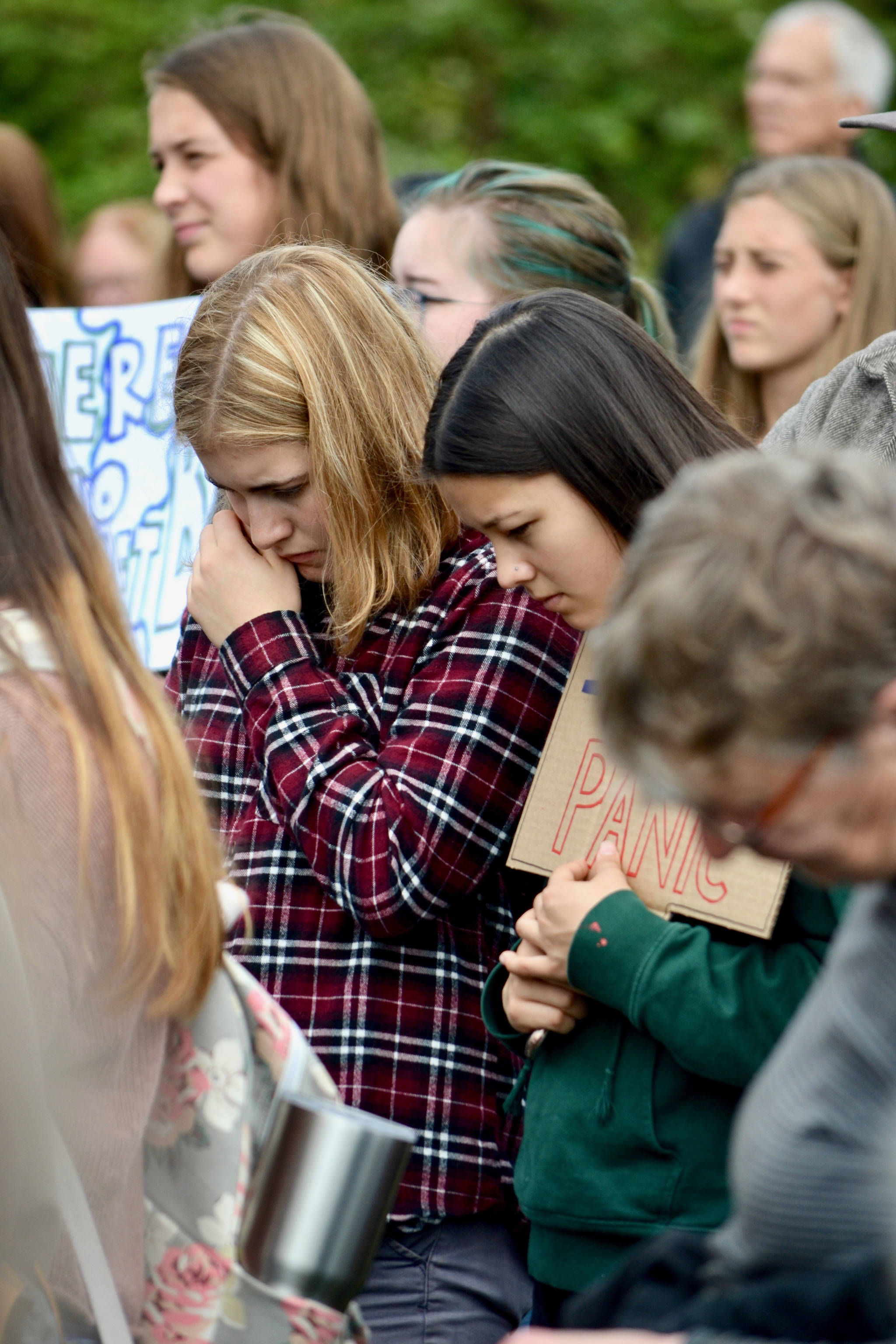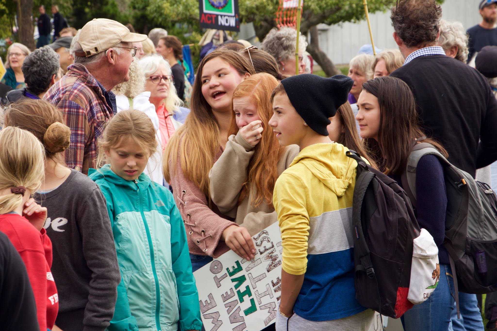 Contributed photo by Corey Wiscomb. Friends console each other on the Village Green during the Global Climate Strike on Friday, Sept. 20