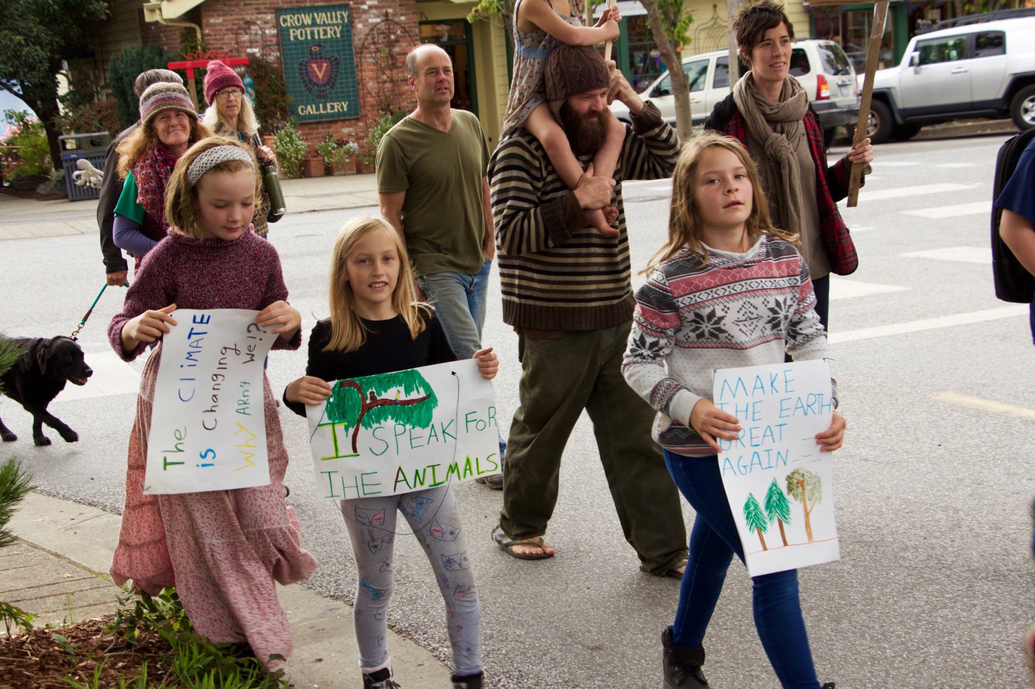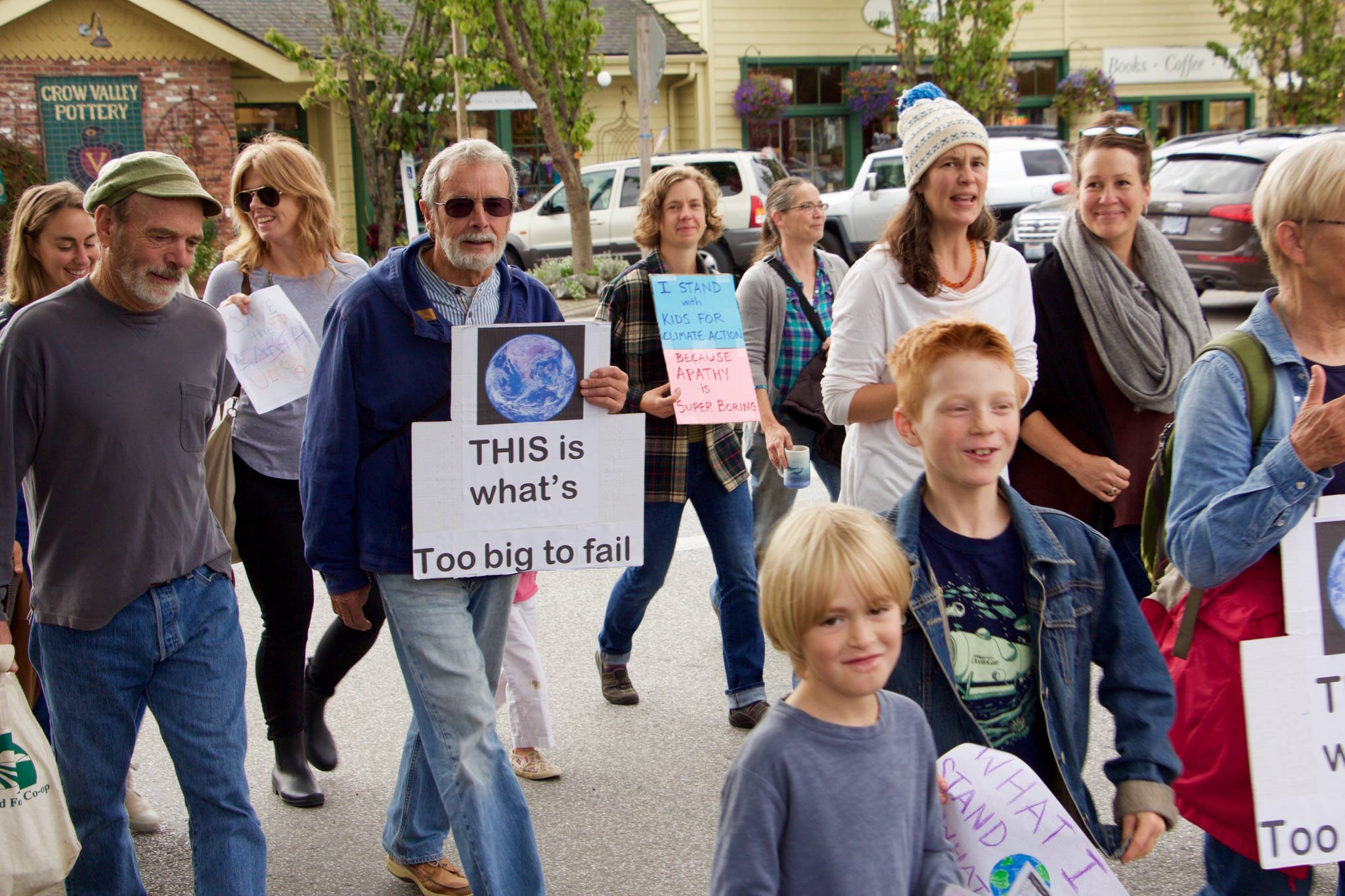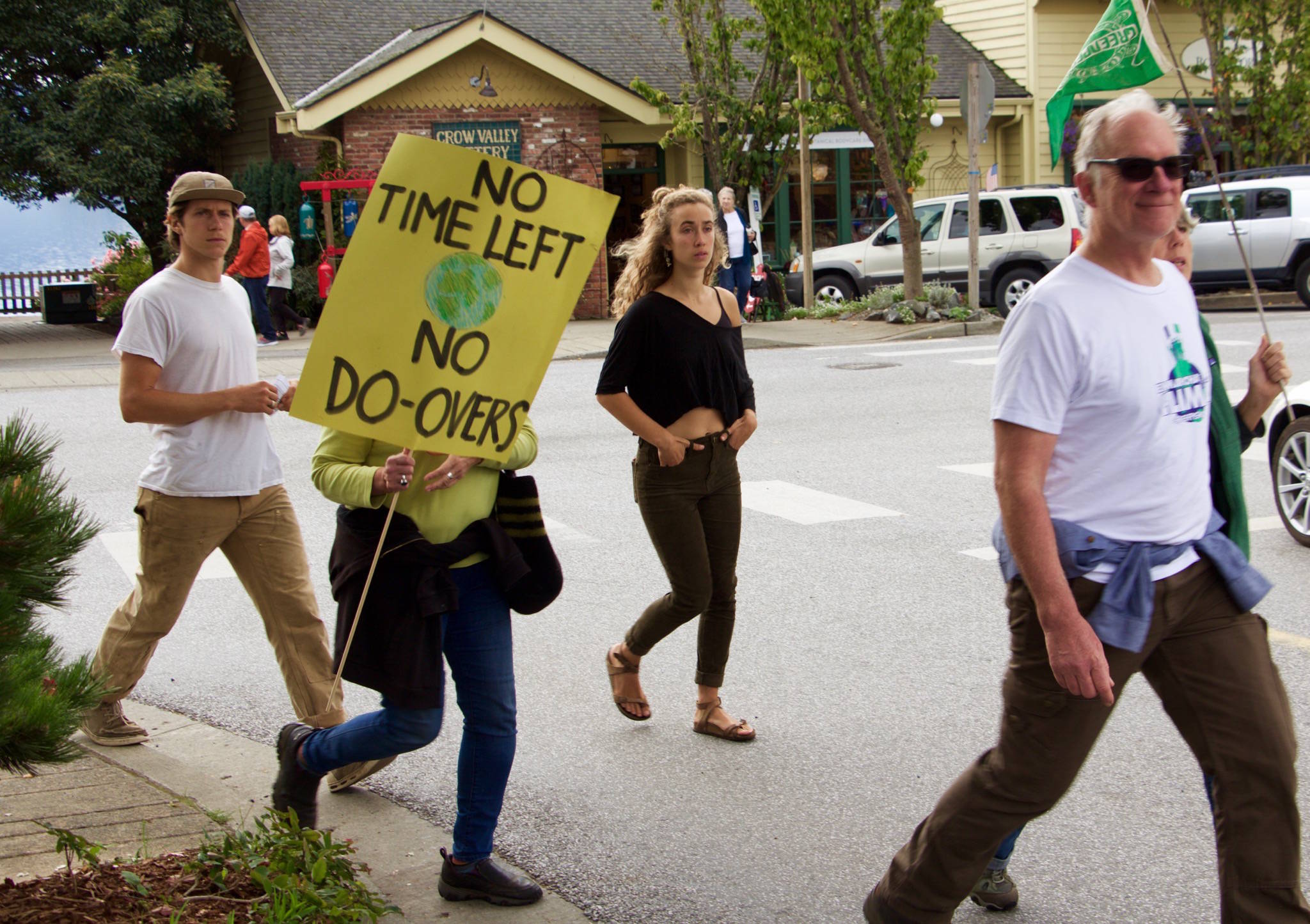 Led by students at Orcas Island High School, climate strikers marched in the streets of Eastsound at noon