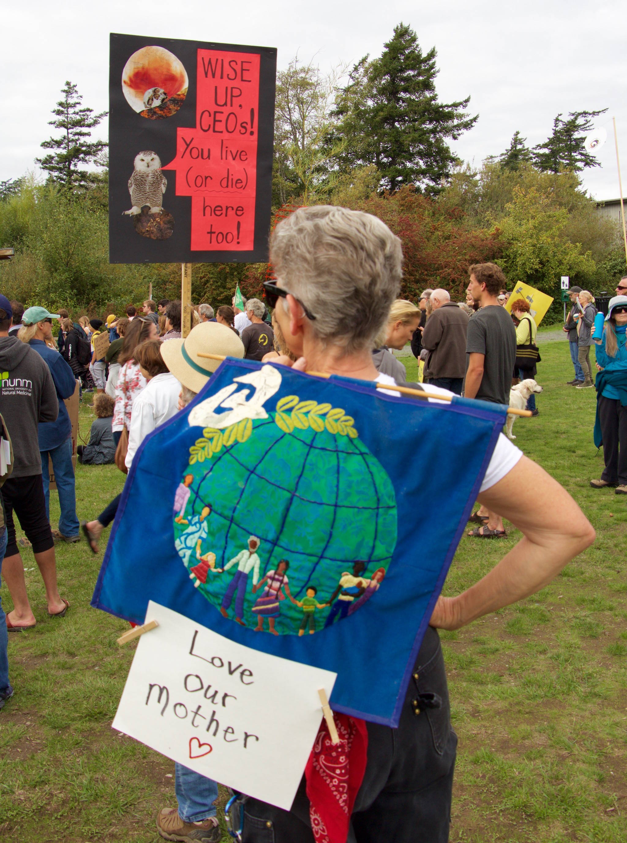 The Orcas Food Co-op and Sequel closed their doors for the afternoon so employees could attend the climate strike. Rain Shadow Solar business owners offered employees an hour of paid time off to attend any of the three events held on Orcas, San Juan or Lopez