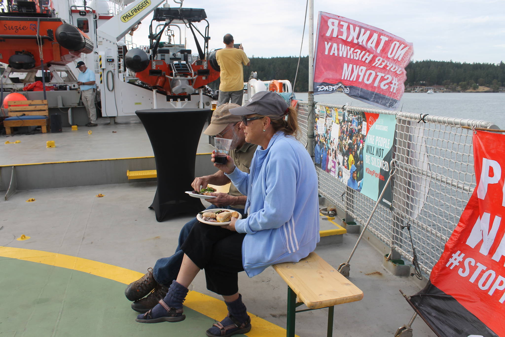Volunteers against Kinder Morgan Trans Mountain Pipeline honored on Greenpeace vessel in Friday Harbor