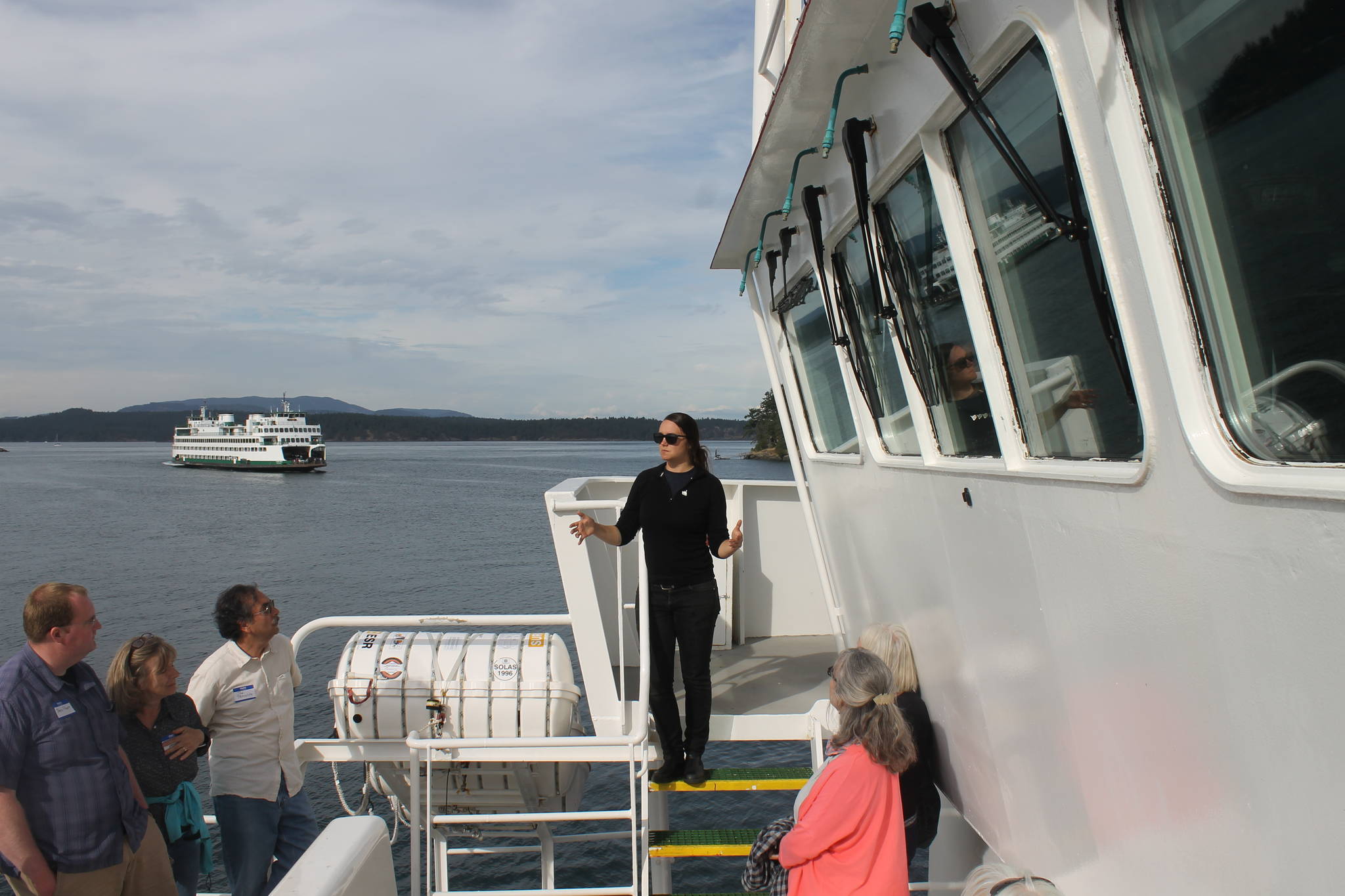 The Arctic Sunrise made a short stop on June 27 in the Port of Friday Harbor and held a reception on board the vessel for those who have worked against the pipeline. Hundreds of people attended the event which included refreshments, music, ship tours and speakers. Captain Pep Barbal, of the Arctic Sunrise, and Safe Shipping members Lize Michaelson and Shaun Hubbard were presented with Orca Protector pennants from San Juan Islanders for Safe Shipping. SJISS is comprised of a group of islanders who have been concerned about the adverse impacts to the local economy and environment due to increasing tanker traffic. To learn more about this organization, visit https://islandersforsafeshipping.org/about/. Orca Protectors is an outreach arm of SJIFSS, dedicated to education and action to help protect the environmental and economic health of the Salish Sea, according to their press release, and pennants will be available for purchase at Kings Marine in Friday Harbor and The Company Store in Roche Harbor.
