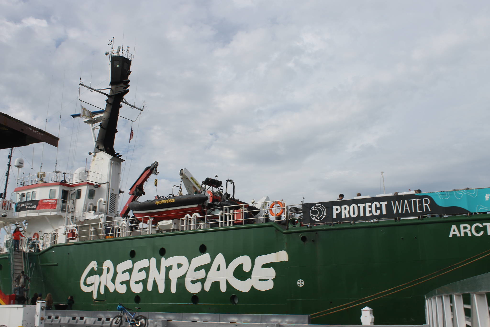To emphasize the impacts of the proposed Kinder Morgan Trans Mountain Pipeline, the Greenpeace vessel Arctic Sunrise is following the tankers’ route through the Salish Sea.