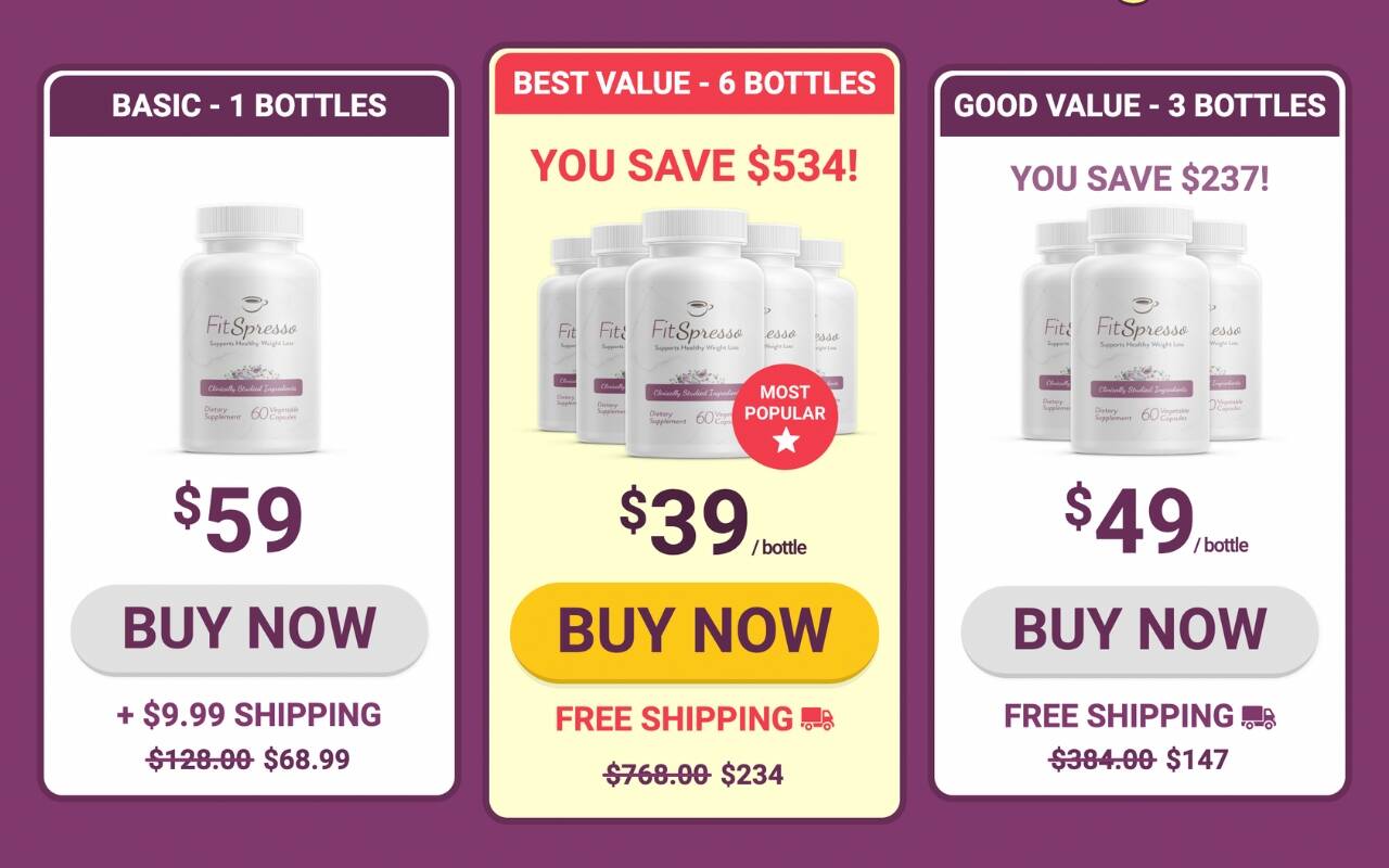 • Free Shipping: For convenience and added value, Fitspresso offers free shipping on the 3-bottle and 6-bottle packages, allowing you to enjoy your favorite product without worrying about additional shipping costs.