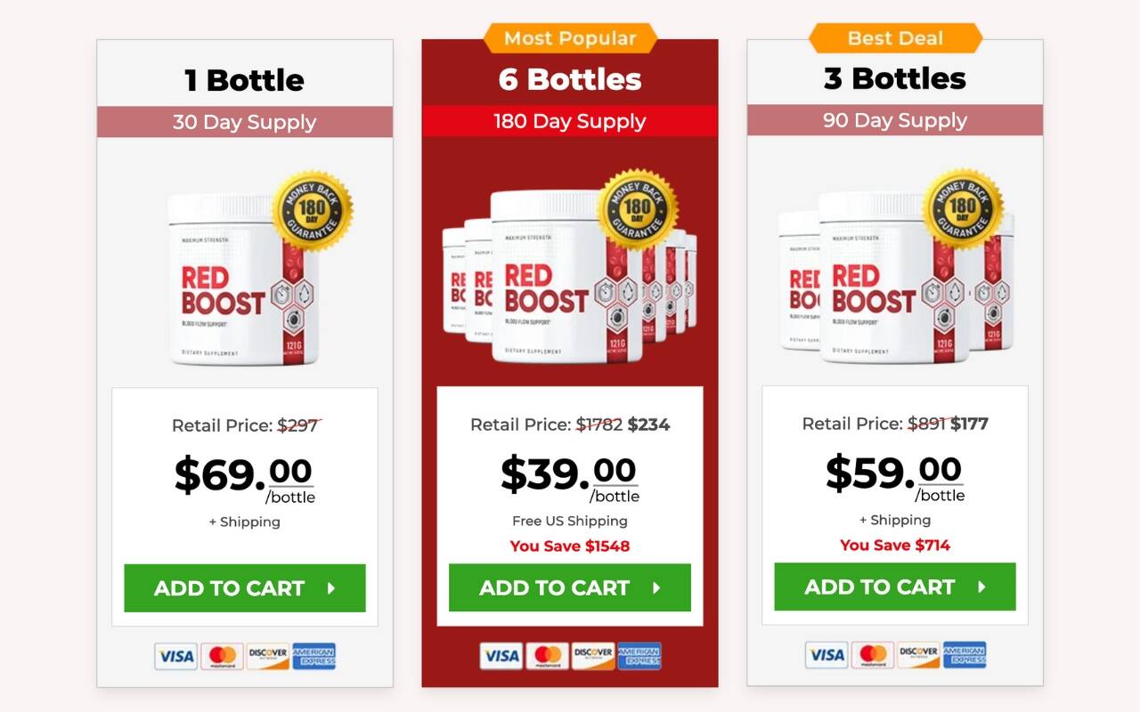 For those seeking a more substantial supply of Red Boost, the three-container bundle is available at a total of $177, in addition to shipping charges. This option not only provides you with a convenient supply but also offers a cost-effective solution, ensuring you have an ample stock of Red Boost for continued use.